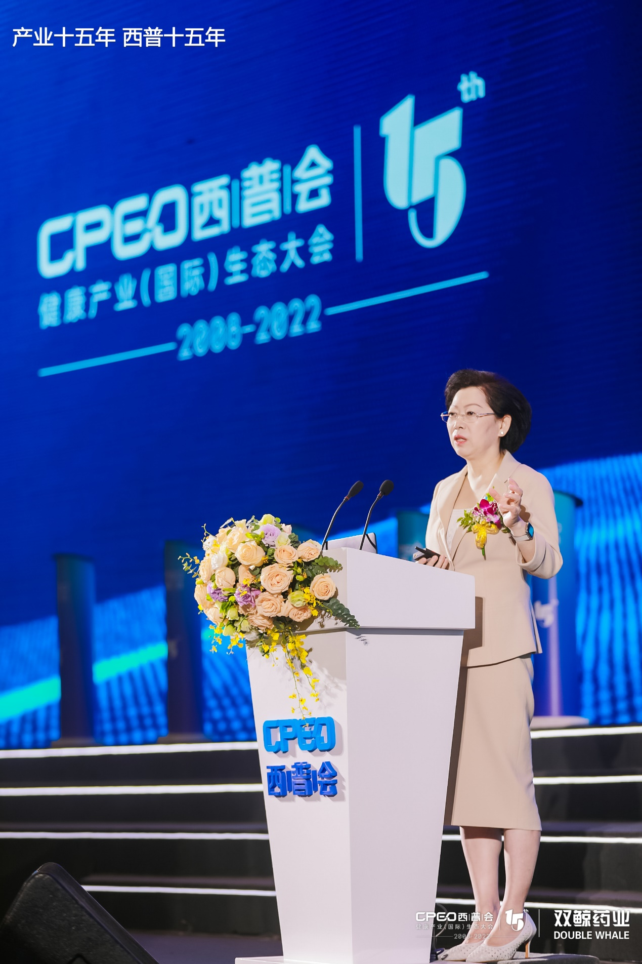 开幕式上,刘景萍董事长作了题为《中医药热+标外风口:迎接黄金增长新十年》的主题演讲。她首先分析了二十大报告中关于中医药发展的有关精神,提出中医药是中华文化伟大复兴先行者,中医药是标外市场高增长的重要新赛道。如今儿药行业迎来发展黄金机遇,巅峰国际药业将从科技创新、智能制造、专业服务、品牌共建等方面发力,全面推动儿药行业创新发展,树立儿童药民族品牌。